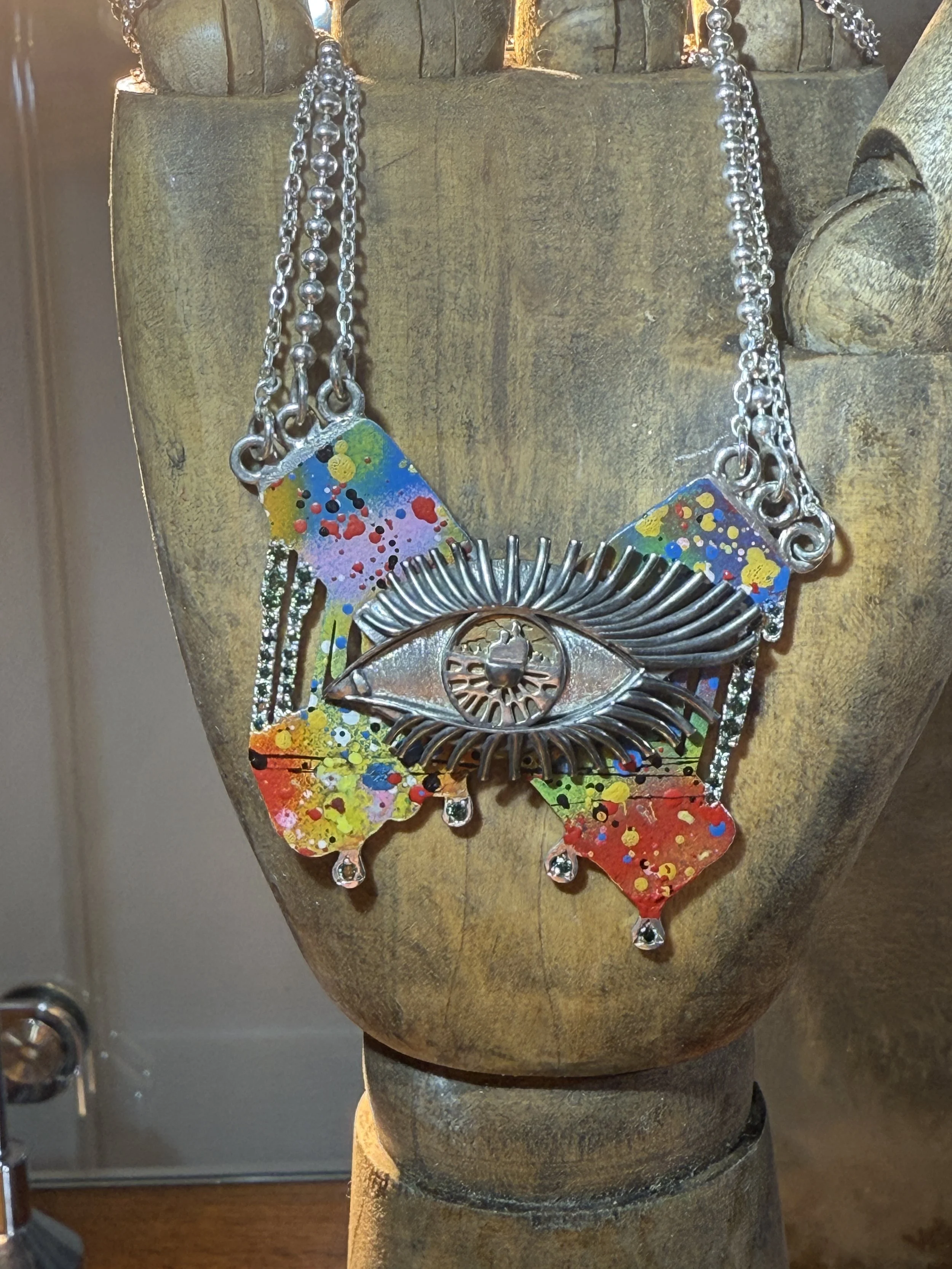 I’ve always pushed myself to work with a range of materials, from old tin cans and other found items to traditional canvases and concrete. My work is influenced by the materials and I often spend time before I start painting thinking about the best way to use them in my work.