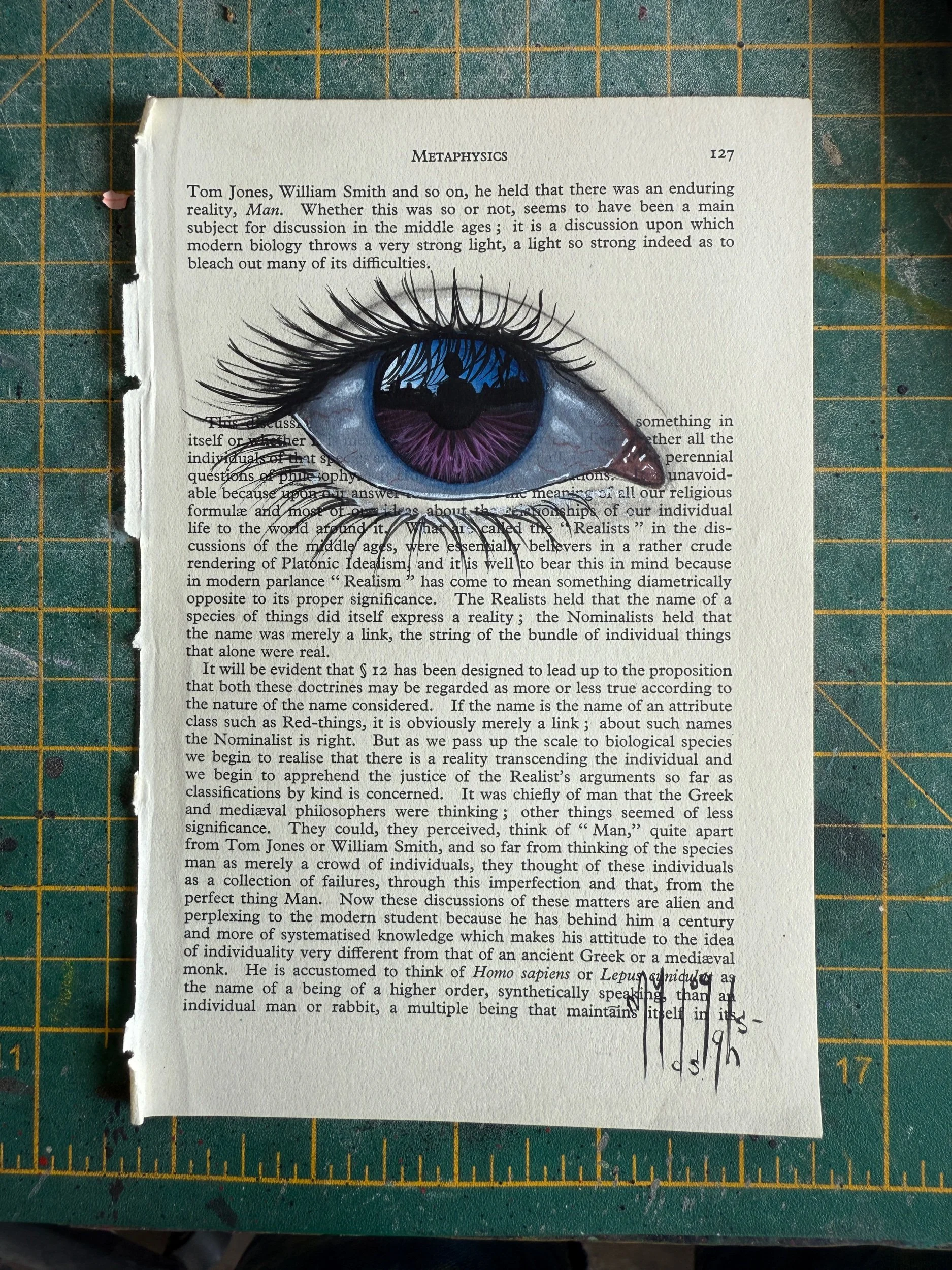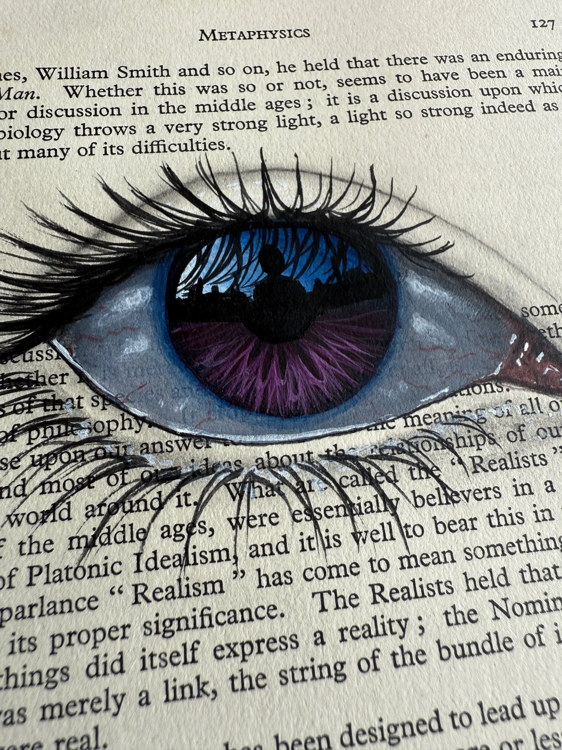 Metaphysics 127 purple iris - hand painted framed book page